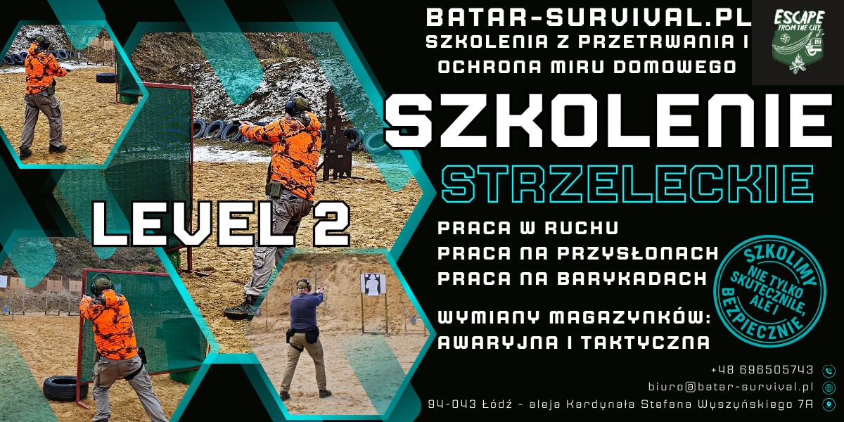 Szkolenie Strzeleckie LEVEL 2 to kolejny etap nauki dla osób, które ukończyły LEVEL 1 i chcą zwiększyć swoje umiejętności w pracy z pistoletem i strzelbą, przygotowując się do realistycznej ochrony domu, rodziny i mienia. Kurs skupia się na pracy w ruchu, wykorzystaniu przysłon i barykad oraz wykonywaniu zadań strzeleckich w bardziej wymagających warunkach.